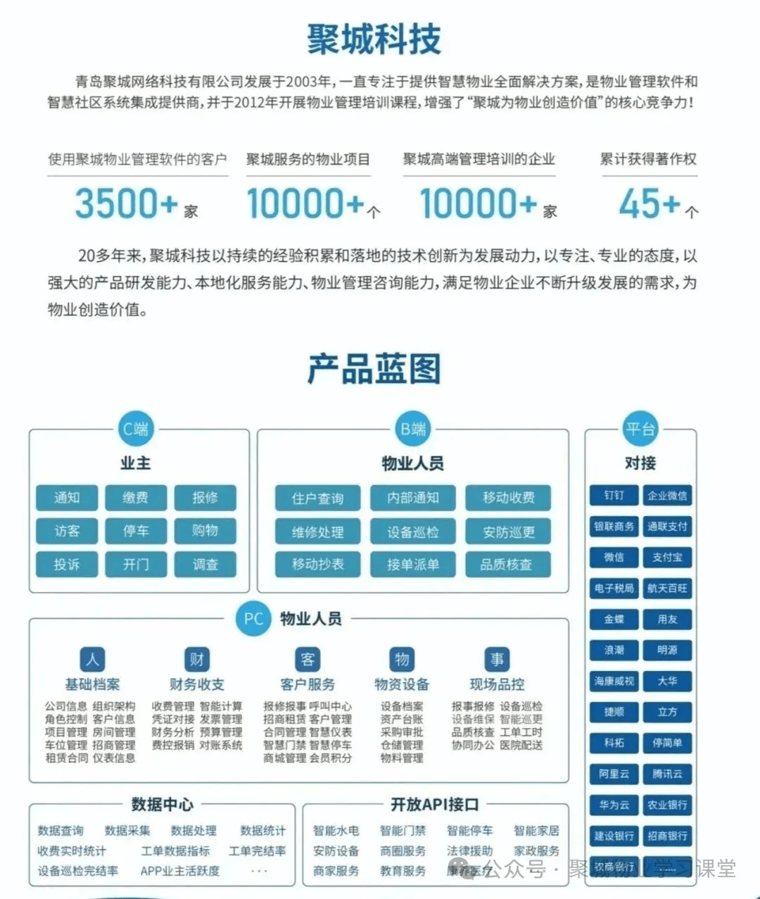 智慧社区的建设需要可靠的技术载体。深耕行业二十余年的聚城物业软件,以“云收费、全运营、强服务、广集成”为核心能力,已成为超3500家物业企业的数字化合作伙伴,助力智慧社区从蓝图走向日常。