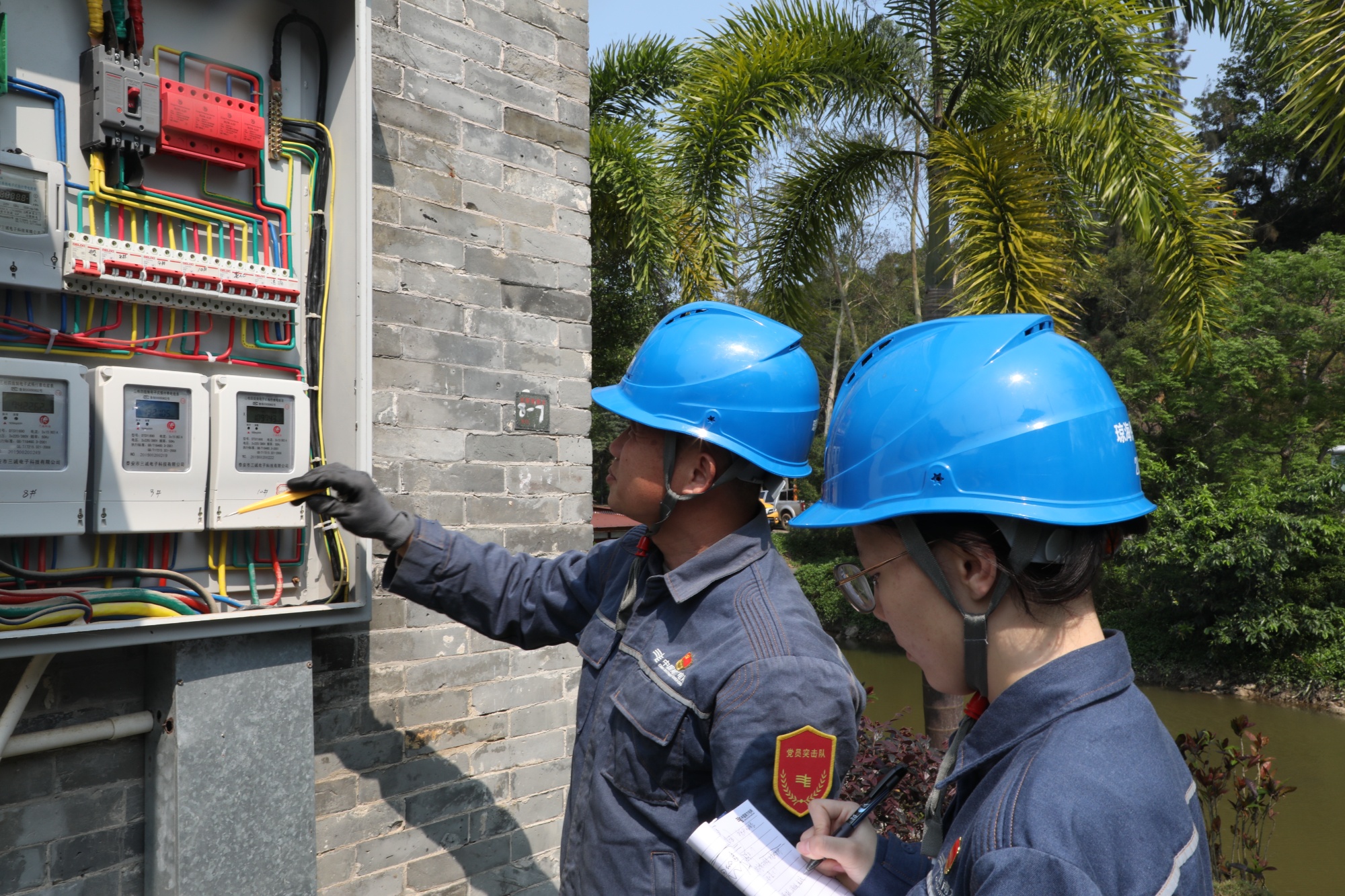 海南电网海口供电局工作人员在海口市花漾年小区进行电力抄表到户改造。杨永光 摄